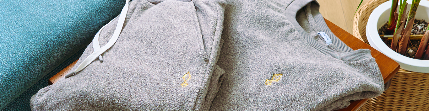 夏のワンマイルウェア ワンマイルウェアという言葉をご存知ですか? 自宅から1マイル(約1.6km)つまり徒歩圏内程度のお出かけにぴったりなファッションという意味でルームウェアとして快適なアイテムでありながら、そのまま外に出られる服装を指します。おうち時間とお出かけ時間を緩やかに繋ぐのがワンマイルウェア。mucavaでは、ルームウェアとしての着心地と高い機能はそのままに、ちょっとしたお出かけを彩るデザイン性も備えたワンマイルウェアをご用意しています。 キシリトール加工のアイテムは、汗などの水分を吸収すると温度を下げる効果があります。 ちょっと汗ばみそうな夏のお散歩もさらりと快適に過ごせる優れものです。IFMC.加工の血行促進効果で、お散歩の健康効果も高めることが期待できます。 両面パイルのアイテムは、ふかふかのタオルに包まれるような着心地が特徴。 パイル地の吸水性とIFMC.加工で、暑い屋外からエアコンの効いた室内に入った時の、汗が急に冷えて寒いを防ぐ効果が期待できます。北欧のお守りヒンメリのワンポイントもおしゃれなお料理前のお買い物が楽しくなるアイテムです。 ムーミンコラボのアイテムは、柔らかい手触りとかわいいムーミンたちが気分を明るくしてくれます。 早起きした日は、大好きなキャラクターたちと一緒におうちを出て、お気に入りのパン屋さんでモーニングを楽しむのもいいかもしれません。もちろんこちらもIFMC.加工で、心だけでなく体もきちんと整えてくれます。 おうちでのリラックスと外でのおしゃれを同時に叶えるワンマイルウェアがあれば、休日の選択肢はもっと広がります。思わず出かけたくなるようなmucavaのワンマイルウェアで、心も体も充実した休日を過ごしませんか。