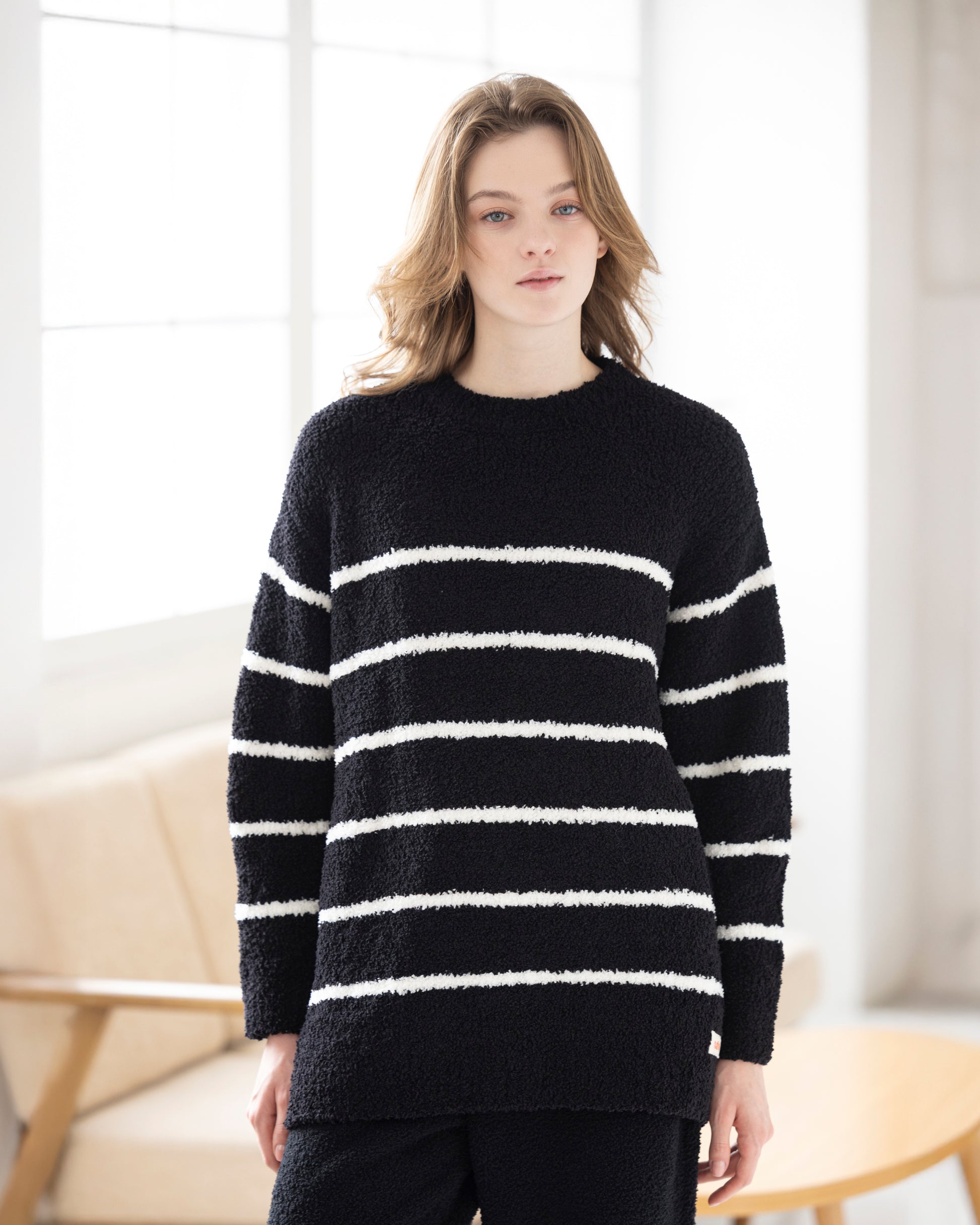 【LADIES】血行促進ボーダークルーネックセーター